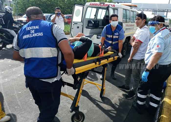 La joven quien corría el riesgo de perder su embarazo, después de ser atendida por miembros de la central de ambulancia del Ministerio de Salud, fue trasladada al Hospital Manolo Morales y su esposo en una unidad de Cruz Roja Nicaragüense.