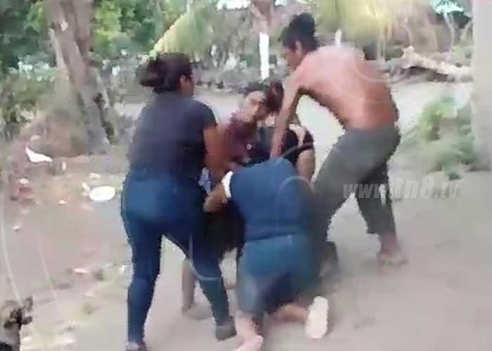 En un video enviado a nuestra línea de WhatsApp 7832-0088, se aprecia a varias mujeres que por algunos minutos transformaron la calle de un barrio del municipio Altagracia, en la Isla de Ometepe, en un ring de boxeo.