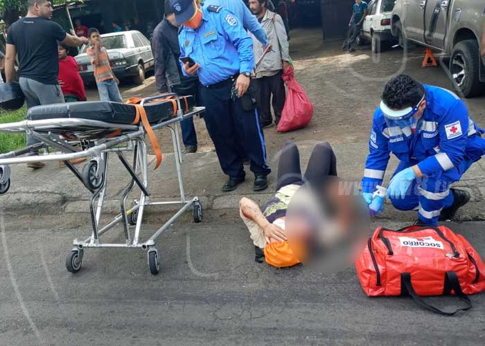 "Presentan escoriaciones en diversas partes del cuerpos, golpes y descartar una fractura en el hombro derecho. La vamos a llevar al hospital Antonio Lenín Fonseca y el queda atendido en el lugar, sólo presenta golpes leves", dijo Pervin Morales, técnico en emergencias de Cruz Roja.