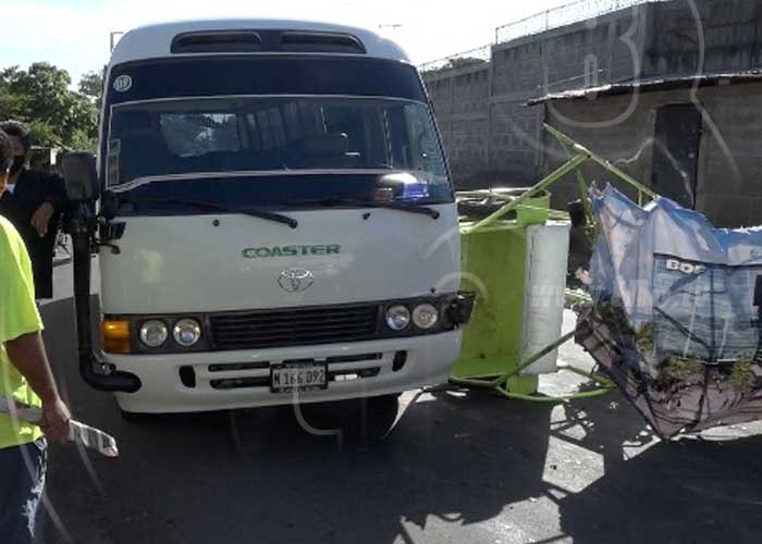 La imprudencia de invadir carril fue la aparente causa de un accidente de tránsito, donde el conductor de una caponera y una pasajera resultaron lesionadosRotonda El Güegüense, en Managua.