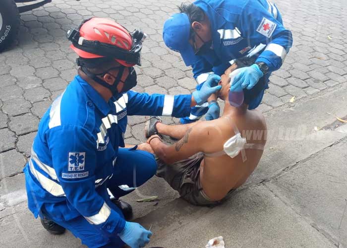 "Al llegar al lugar nos encontramos con un hombre que presenta múltiples heridas por arma blanca pero como ustedes pueden ver se rehúsa al traslado, pese a que lo amerita, principalmente por la herida en el omoplato que es de gravedad, que pudo perforar algún órgano importante. Ya su papá nos firmó la carta de desestimiento que es lo que se hace en este caso y nosotros notificamos a la policía", manifestó Pervin Morales, paramédico de Cruz Roja Nicaragüense.