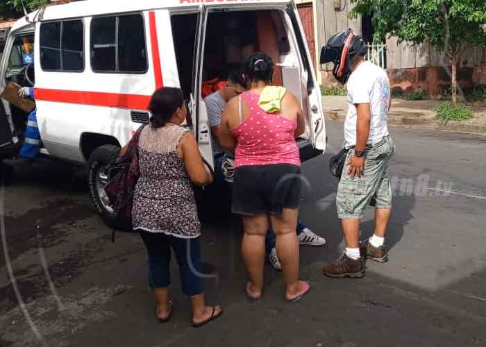 "Nos avisaron de un accidente con lesionados. Al llegar habían dos pacientes por la colisión de una moto y un ciclista. Están estables pero sí ameritan ser llevados al hospital para descartar fractura, pero los dos se rehusan a ir al centro asistencial, quedarán atendidos en el lugar", dijo Freddy Zúñiga, técnico en emergencias médicas de Cruz Roja Nicaragüense.