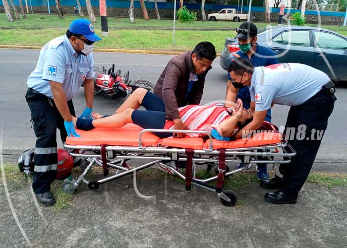 #Nicaragua | Colisión entre dos motocicletas, de los semáforos del Jonathan González, una cuadra arriba, deja a las dos acompañantes lesionadas.