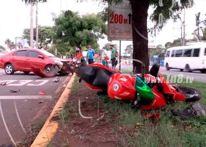 La grabación fue registrada por la cámara del casco que portaba un motociclista identificado como Mauricio Pravia, que lamentablemente fue uno de los protagonistas de este accidente que ocurrió en el kilómetro 11 de carretera Masaya a las 5 de la mañana de este 13 de junio del 2020.