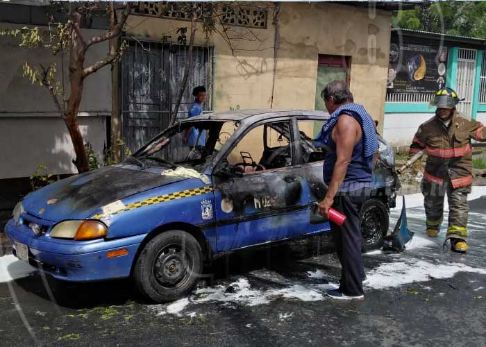 Managua: Fallas en el sistema eléctrico originan incendio en un taxi