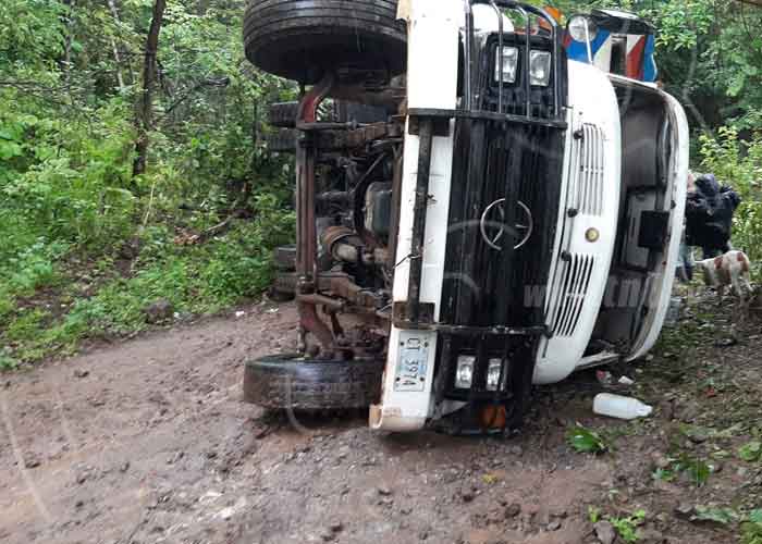 Las aparentes fallas mecánicas en el sistema de frenos provocaron que un camión cargado con más de 20 reses de ganado, ocasionara este jueves 9 de julio del 2020, que el conductor perdiera el control, yéndose de retroceso y se volcara quedando cruzado sobre el camino que conduce a la comarca Cuajinicuil, tramo carretero del municipio de Juigalpa hacia La Libertad en el departamento Chontales.