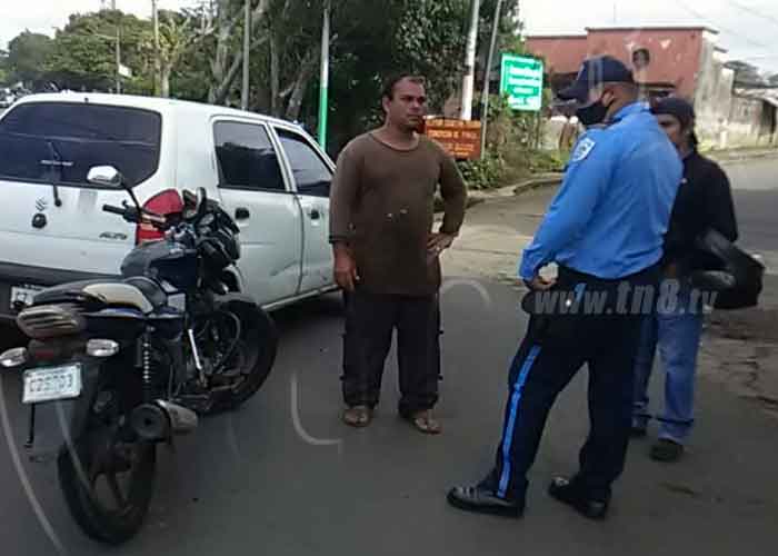 El accidente de tránsito se produjo en la cercanías del autodesarme Emmanuel en el municipio Dolores, departamento Carazo. Luis Esteban, conductor del carrito, al sentir el impacto frenó y observó a través del retrovisor que el hombre tras impactar su automóvil cayó al pavimento con golpes leves.