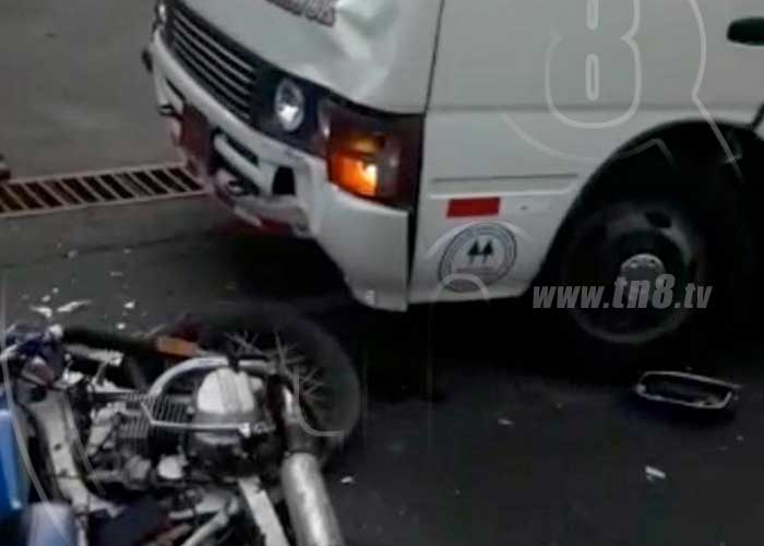 Esta mañana se suscitó un accidente de tránsito en la parada de los interlocales conocida como El Calvario en Jinotepe; en este accidente resultaron dos personas lesionadas, una de ellas en este caso el conductor de la motocicleta es el más grave producto del impacto.