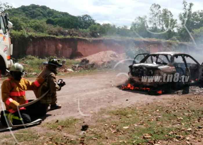 Vehículo se quema en la carretera hacia Posintepe en Granada
