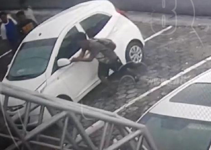 22 segundos son suficientes para que varios sujetos roben los espejos de unos vehículos estacionados a las afueras de una conocida ferretería, ubicada en Altamira, Managua.