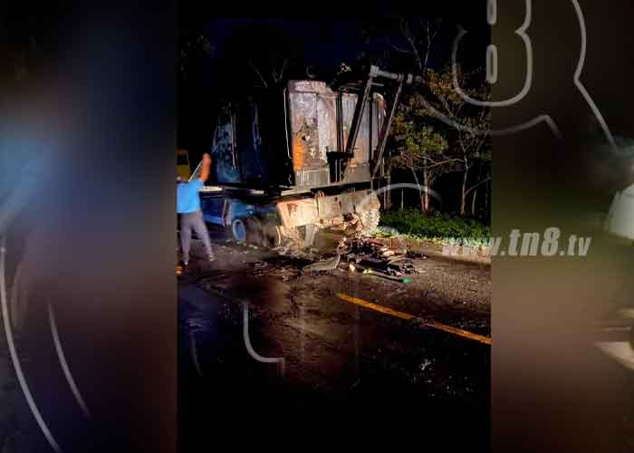 El ciudadano identificado como Noel Antonio Jirón Hernández, perdió la vida quedando completamente calcinado la noche de este miércoles, luego de impactar la moto en que viajaba contra la parte trasera de una grúa, que se encontraba estacionada presuntamente por varias semanas. El lamentable suceso ocurrió en las cercanías del Kilómetro 271, comarca El Enchape del municipio Nueva Guinea.