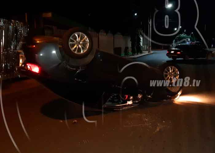 Mascota provoca que su ama pierda el control del vehículo y terminan volcados
