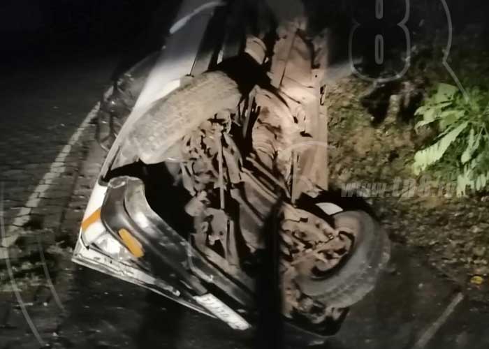 Aparentemente un desperfecto mecánico en el automotor pudo ser la causa principal que provocara que este vehículo se volcara. El mismo era conducido por Geyder Giomar Rodríguez Treminio de 30 años de edad, quien se hacía acompañar de Alexander Ramón Hernández de 38 años y Audiel Alcides Rodríguez Treminio de 40, todos procedentes de Ciudad Darío.