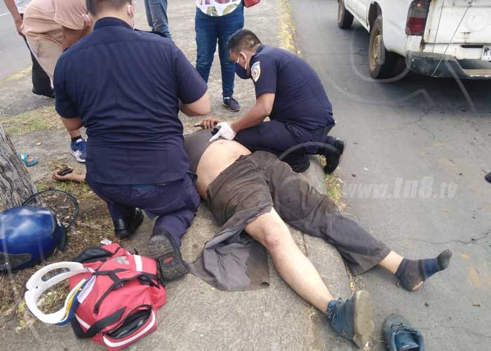 Miembros de la Dirección General de Bomberos le brindaron los primeros auxilios al accidentado y posteriormente lo trasladaron al Hospital Antonio Lenín Fonseca para que especialistas descartaran lesiones internas. “El paciente presenta trauma cerrado de rótula a nivel de tórax”, informó Geovanni Valerio, bombero.