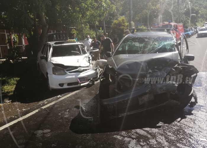 El hecho ocurrió cuando al conductor del taxi marca Toyota Yaris color gris placas BO 102 se le abriera unas de sus puertas y al querer cerrarla. El chofer perdió el control impactando de frente con el taxi de la misma marca color blanco placa BO 039, en el cual las personas que los abordaban resultaron con serias lesiones entre ellas, 5 pasajeros y los 2 conductores, quienes permanecen en observación en el hospital de Boaco.