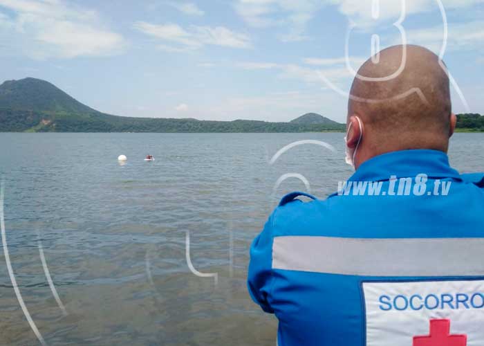 Buzos de la Cruz Roja Nicaragüense estuvieron aproximadamente una hora, buscando el cuerpo de un hombre que se había ahogado en las aguas de la laguna de Xiloá este domingo 20 de septiembre del 2020.