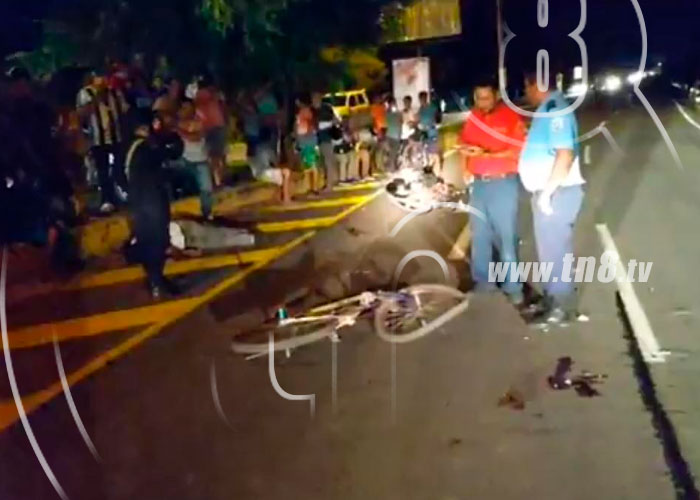 El accidente se registró exactamente frente a la entrada del Reparto San Juan donde falleció una persona identificada como Manuel Antonio Bermudez de 45 años de edad, quien viajaba como acompañante del motociclista Rodrigo Mejía, ambos originario de la comarca Malacatoya en Granada quienes impactaron de manera frontal contra un ciclista quien fue identificado con el únicamente por el nombre de Norlan.