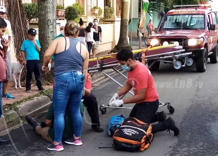 El hombre circulaba este miércoles en las cercanías de la policía de Diriamba, cuando según testigos perdió el control de su bicicleta al pasar por un bache y cayó al pavimento, provocándose lesiones de consideración en su rostro.