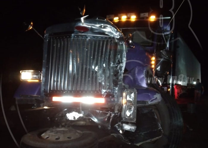 La noche de este miércoles en el kilómetro 27 de la Carretera Panamericana Norte se registró un fuerte accidente de tránsito entre un camión cisterna color blanco placa M 237495, conducido por Luis Pichardo, y un furgón junto a su rastra, conducida por Elvin Omar Aguilar Cáceres; quien venia de norte a sur y supuestamente venía en su preferencia.