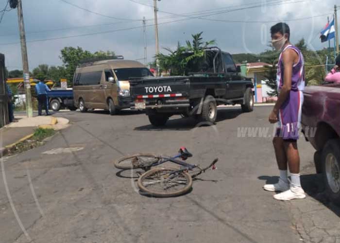 Un jovencito que circulaba en su bicicleta de sur a norte frente al CDI de Jinotepe este miércoles, resultó con lesiones en su cuerpo, al ser catapultado por un microbús interlocal que hizo un giro imprudentemente.