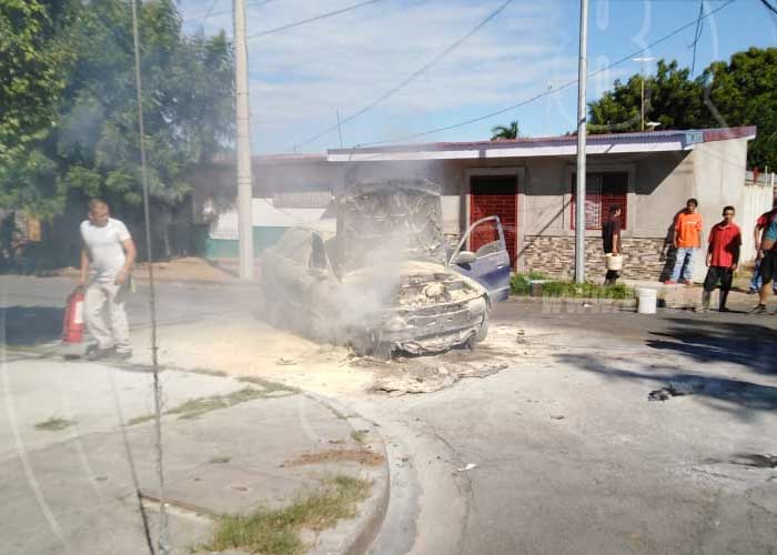 Un vehículo quedó reducido a cenizas este miércoles mientras transitaba en una de las calles del barrio Santa Ana, ubicado en el Distrito II de Managua.