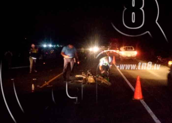 El choque entre dos motocicletas en horas de la tarde dejó como resultado una persona fallecida y un lesionado, a la altura del Kilómetro 139 carretera Corinto- Chinandega.
