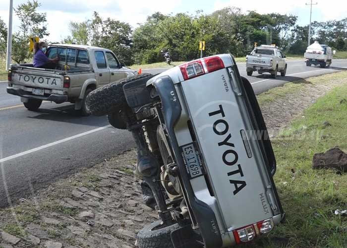 El conductor identificado como Mario Aguinala Lazo y los acompañantes, circulaban en el vehículo por la comunidad El Tular al Norte del municipio de Estelí, cuando supuestamente perdió el control saliendo de la vía quedando el automotor volcado.