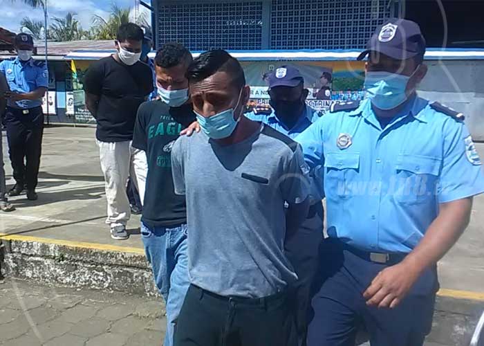 Delincuentes capturados por el delito de robo con intimidación (asalto) en el municipio de La Conquista, Jesús Manuel Aburto Peña, Nevil Guadalupe Aburto Peña, Luis Antonio Ruiz Téllez, Elmer Enrique Peña Peña en perjuicio de las víctimas identificadas con las iniciales R.G.D. y E.B.U.CH. Hecho ocurrido en la comarca La Hormiga municipio de La Conquista.