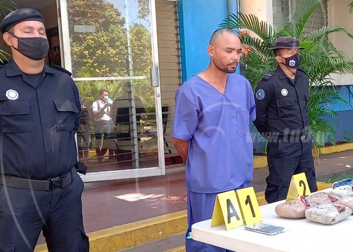 La Policía Nacional en conferencia de prensa brindó detalles sobre la captura de un delincuente por el delito de trafico de droga en Chinandega.