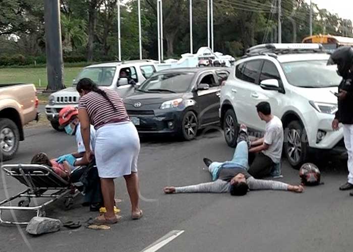 Producto del accidente, "la muchacha tiene un posible trauma craneal y el joven una posible fractura en el miembro derecho, lo vamos a llevar al Hospital Alemán Nicaragüense", dijo uno de los técnicos en emergencias médicas que la atendió.