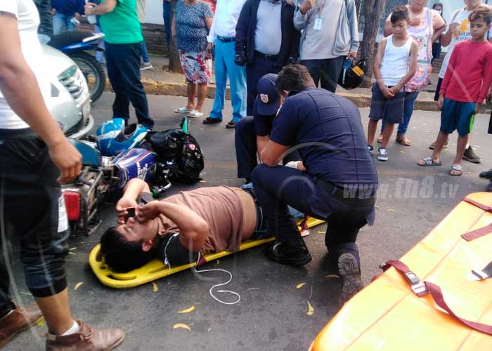 En el Alto que se ubica de donde fue el Cine Cabrera, dos cuadras al norte, en Managua, se registró este martes un accidente de tránsito donde lamentablemente un motociclista resultó seriamente lesionado.