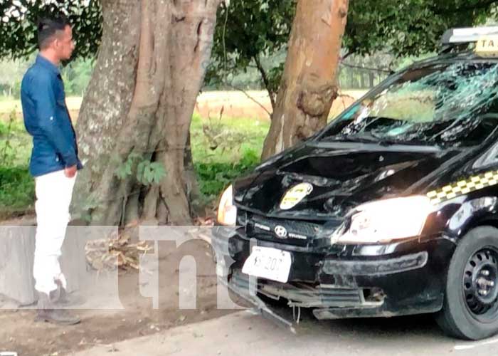 Los accidentes de tránsito continúan a la orden del día en el municipio Jalapa, departamento de Nueva Segovia. Este martes la supuesta invasión de carril provocó un accidente de transito entre un vehículo taxi y una motocicleta.