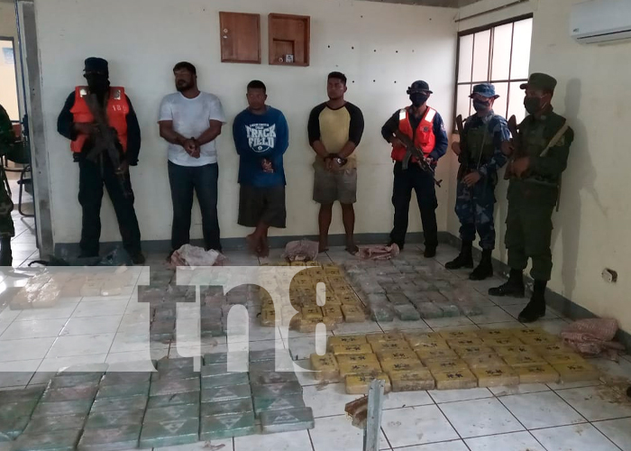 La Fuerza Naval Distrito Caribe del Ejército de Nicaragua capturó a tres sujetos con un cargamento de presuntamente droga en el Caribe Norte.