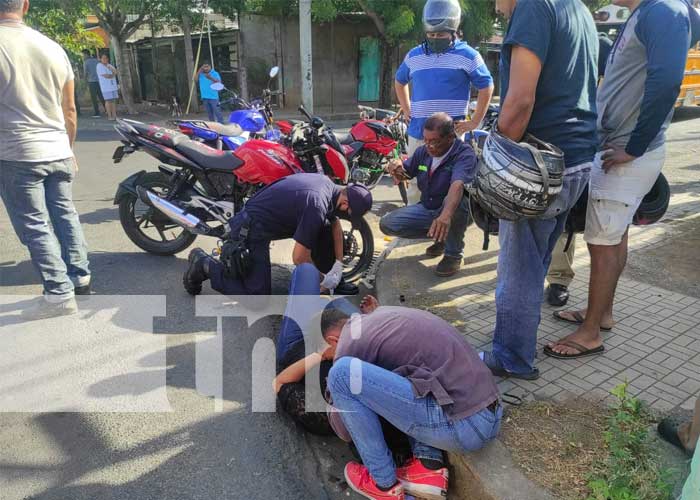 #Nicaragua | Joven de 19 años resultó con una posible fractura en una de sus piernas, al impactar contra un vehículo cuando venía a bordo de su motocicleta