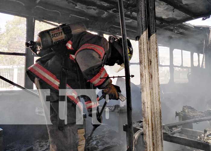Un bus que cubre la Miniruta 4 (MR4) en Managua se incendió en plena vía, en las cercanías a la Rotonda Plaza España, la mañana de este martes.