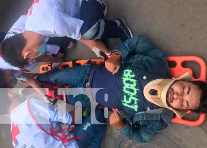 El motociclista lesionado que corresponde al nombre de Alejandro Aguilar de 24 años de edad, conocido como " El Chino " fue auxiliado por técnicos de emergencia de Cruz Roja Nicaragüense, brindándole la atención pre hospitalaria en el lugar siendo trasladado al Hospital Escuela Asunción de Juigalpa en Chontales.