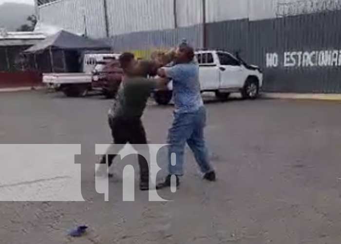 Este miércoles, en horas de la tarde, una tremenda trifulca se registró en una de las terminales de buses en la ciudad de Estelí, cuando dos hombres decidieron arreglar sus problemas personales a puros golpes.