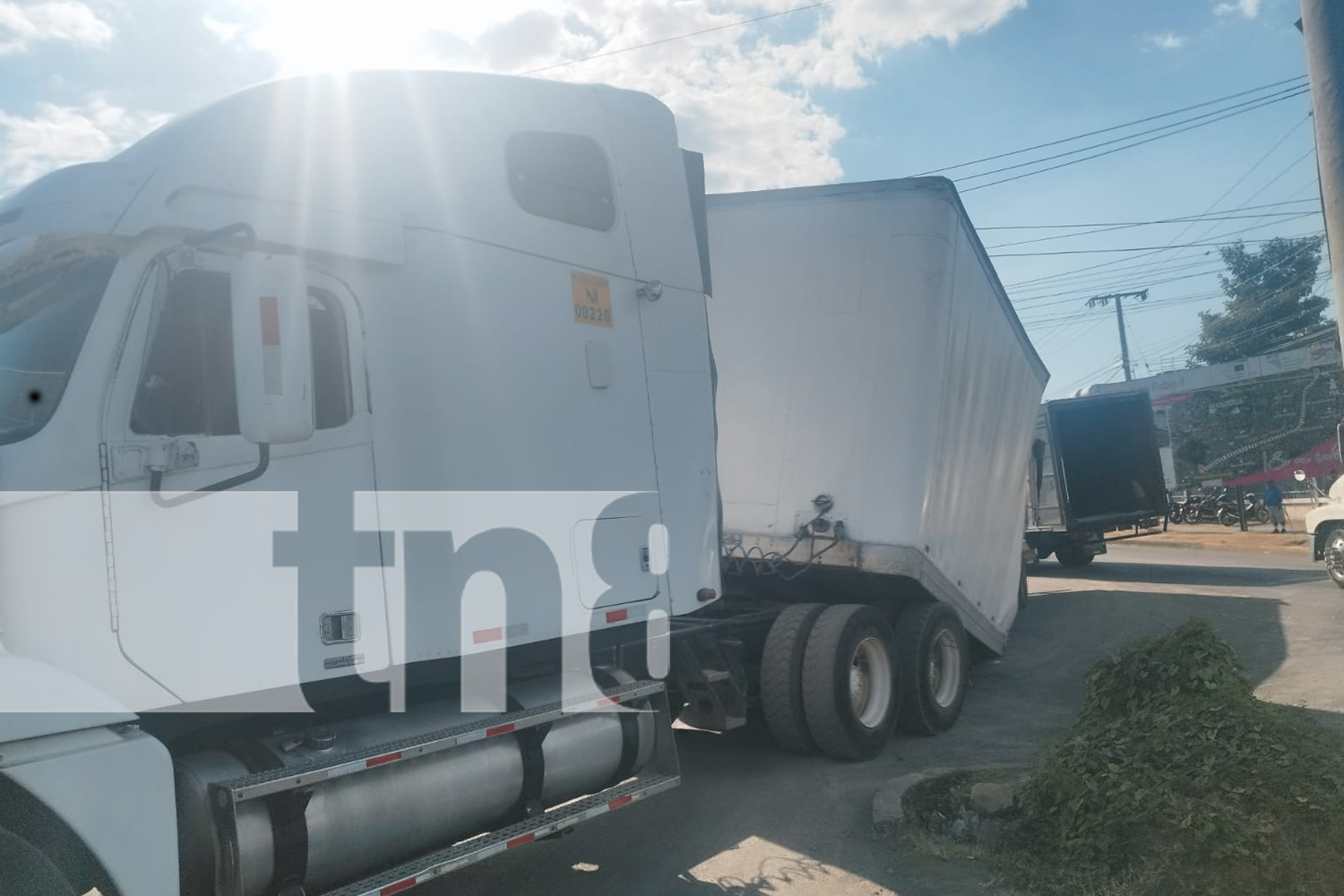 Según los reportes iniciales, el vehículo, de color blanco y con placa de Managua 394-996, sucumbió al intentar girar en la intersección, aparentemente debido a una mala maniobra, la sobrecarga de mercancía y la fuerza centrífuga que provocó que el pesado vehículo se partiera en dos, quedando bloqueadas temporalmente ambas vías.