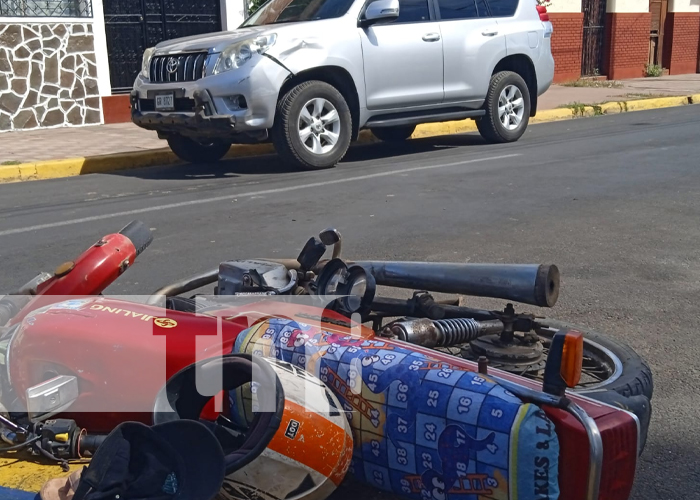Con escoriaciones y traumas en su cuerpo resultó el adolescente de iniciales W.D. G.R, quien recibió un fuerte golpe por una camioneta; la cual conducía Fernando Iván Baldizón Castillo, cuando conducía su moto en dirección de Este a Oeste en Granada.