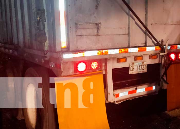 Sin embargo, una pareja que circulaba en una motocicleta de sur a norte adelantó al furgón estacionado y colisionó con la rastra; que tenía placas CH 14327 y estaba girando hacia la izquierda.