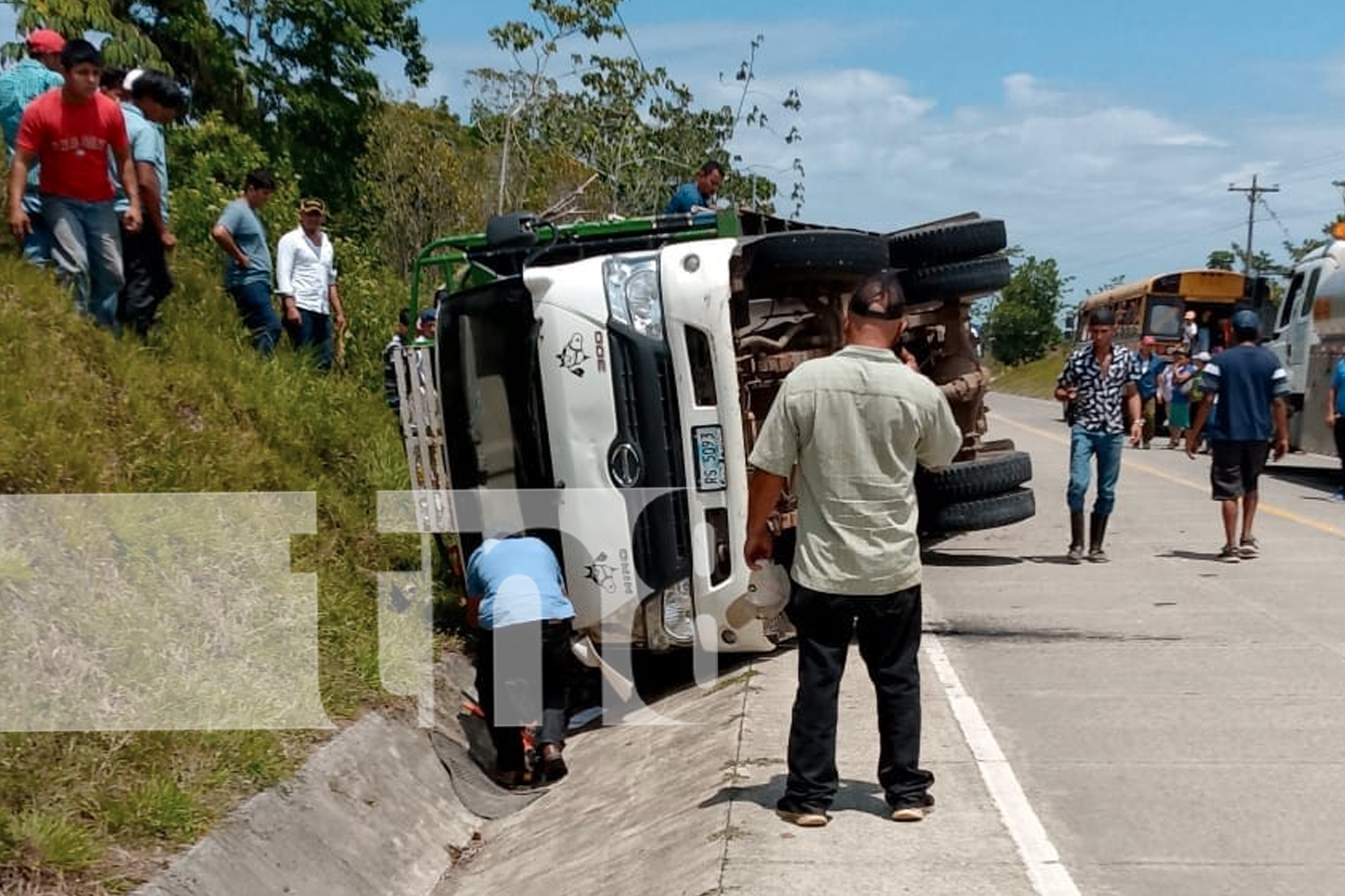 Agustín León López permaneció por varios minutos pidiendo ayuda mientras se encontraba prensado entre las barandas del camión donde viajaba como ayudante y el pavimento de la carretera entre El Rama-Kukra Hill.