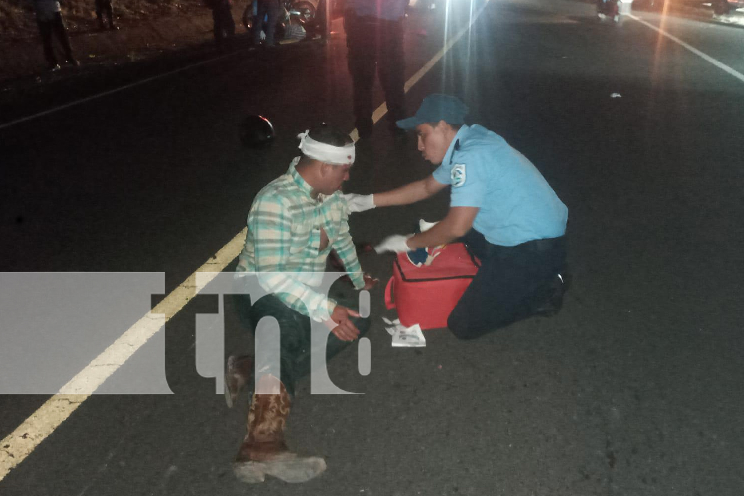 El motociclista, identificado como Melvin Sebastián Calero, de 28 años, arrolló a Marlon Báez Ramírez, el peatón, resultando ambos lesionados. Testigos del suceso que transitaban por la zona rápidamente brindaron auxilio a los involucrados; trasladándolos de inmediato al centro de salud de Acoyapa para recibir atención médica urgente.