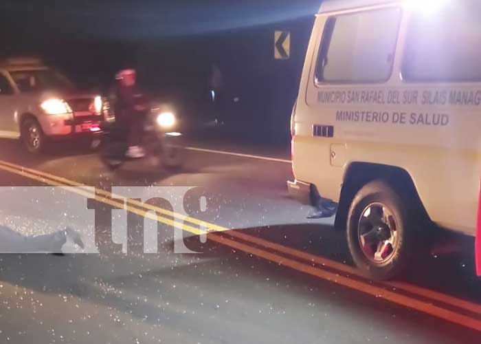 Afortunadamente, una ambulancia que venía hacia la capital proveniente de San Rafael del Sur, por la Carretera Sur; realizó el traslado hacia la sala de emergencia del hospital Fernando Vélez Páiz en Managua.