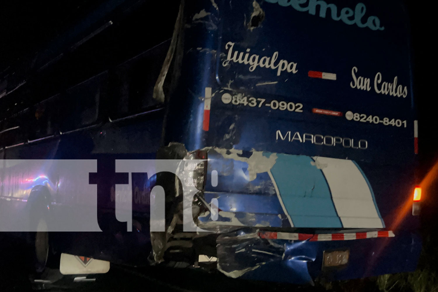 El autobús, de la marca Marco Polo y de color multicolor, con placa CT 193, era conducido por Raúl Antonio Flores Bonilla, de 34 años; quien cubría la ruta de Juigalpa a San Carlos. En el momento del accidente, el autobús trasladaba a 20 pasajeros, quienes, afortunadamente, resultaron ilesos.