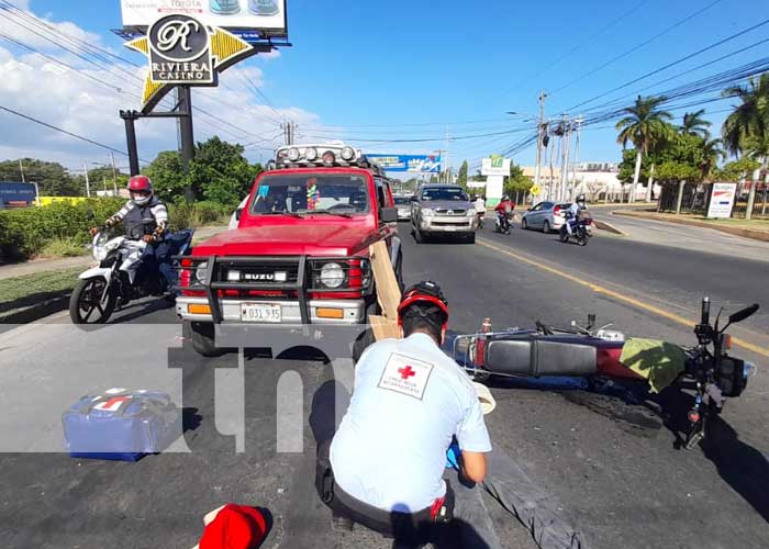 Un motociclista más se une a la lista de accidentes de tránsito en Managua. Se trata de Michael López, quien quedó sobre el pavimento este viernes con golpes en distintas partes del cuerpo.