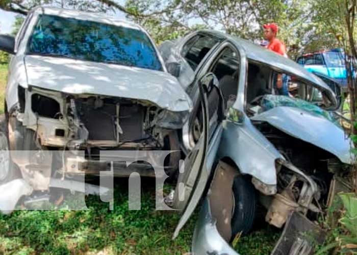 Producto del fuerte Encontronazo los vehículos quedaron a un lado de la vía, los Ocupantes quedaron en el Interior hasta ser rescatados por vecinos del sector de Chontales.