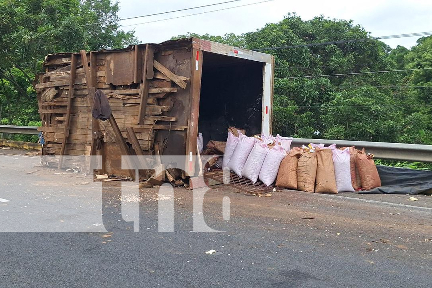 Camión cargado de maní se vuelca en carretera Masaya, Granada