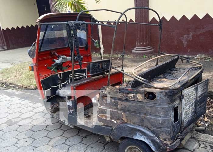 Circulaba a la altura del kilómetro 15 de la carretera Ticuantepe-La Concha, cuando repentinamente tomó fuego y por más que intento tratar de sofocar las llamas; la mototaxi quedó reducida a chatarra.