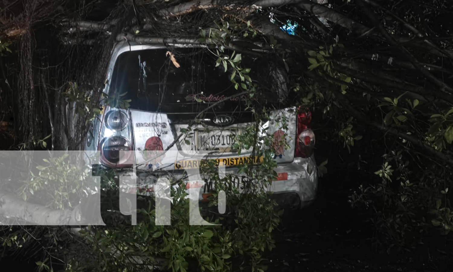 Árbol cae sobre carro recién reparado en el Distrito 6 de Managua