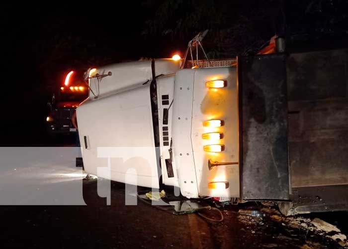 En esta ocasión estamos detallando el caso del camión volquete placa M 339 363; este término volcado sobre el pavimento de la carretera que conduce de la ciudad San Carlos-Managua en Río San Juan.